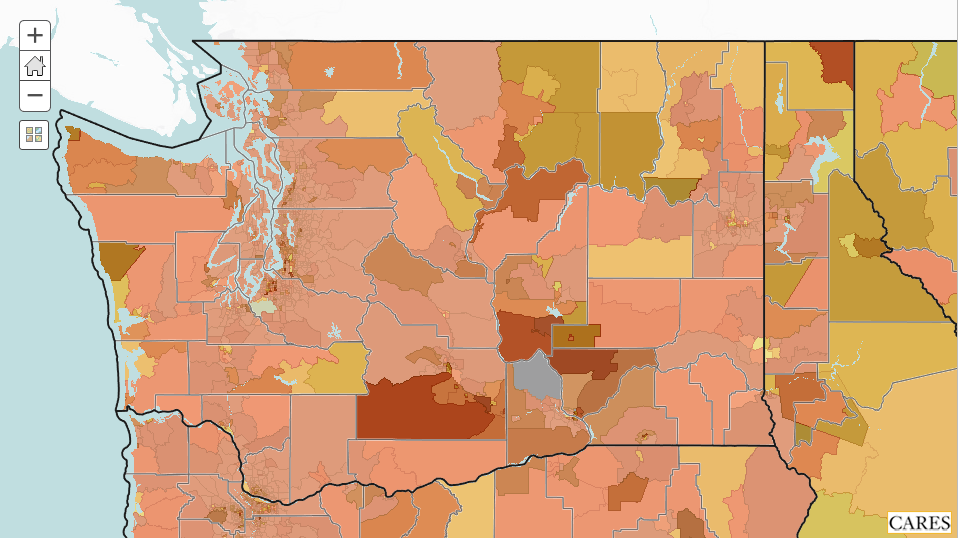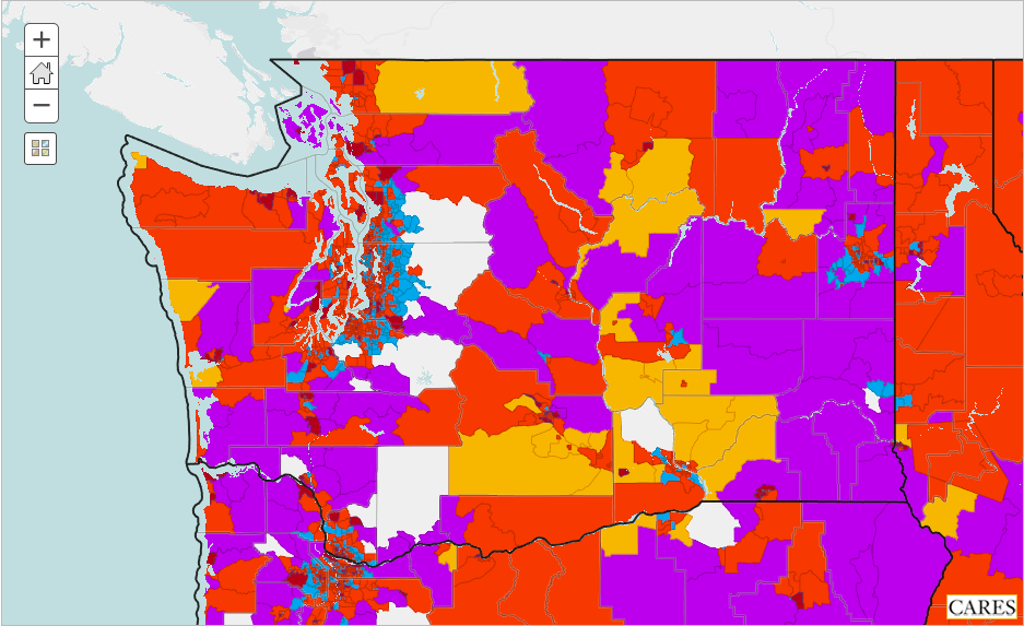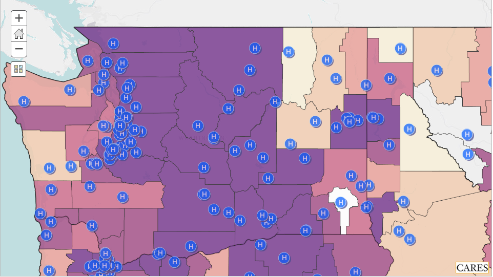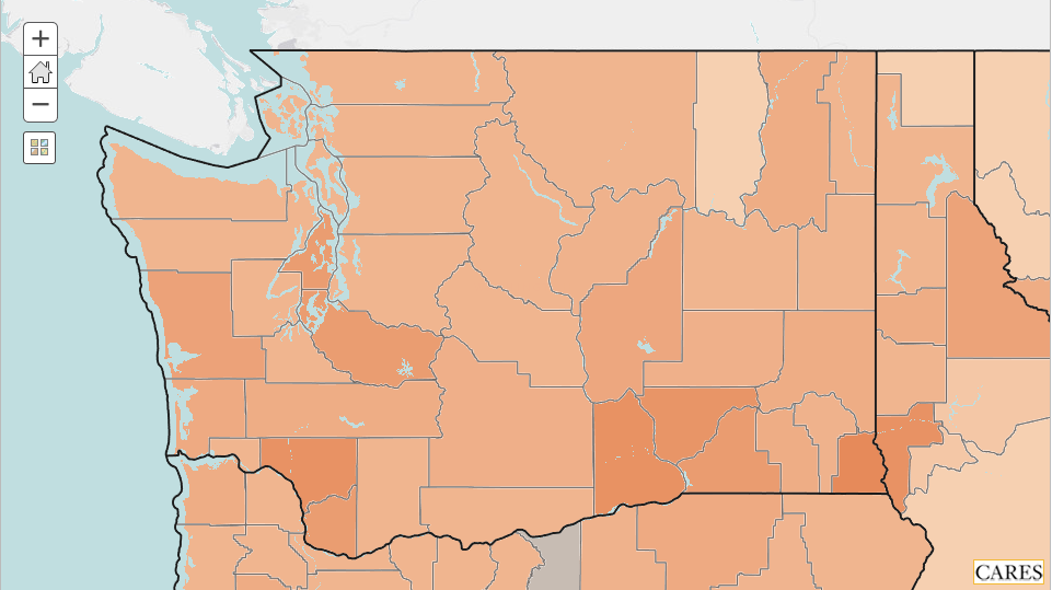 This dashboard provides a daily update of the number of cases and deaths for the state and each county in Washington. Click the tabs at the bottom to view vulnerability indicators related to health, demographics, economics, and mobility.